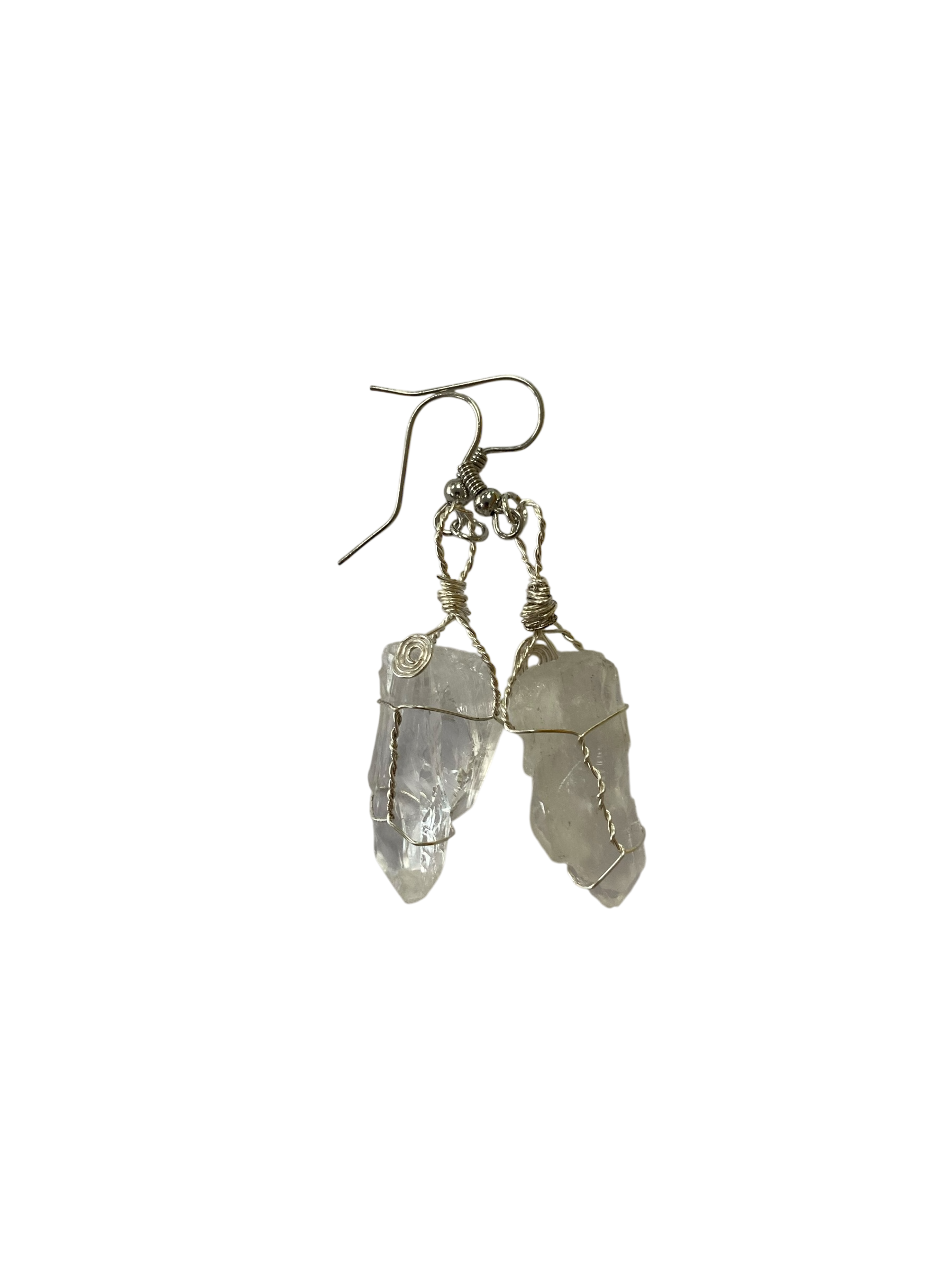 Emerald Wolf - hand wrapped Arkansas quartz dangle earrings